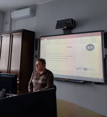 21 лютого 2024 року, у рамках реалізації проєкту Erasmus+ AFID, на факультеті економіки та управління ЗУНУ (Західноукраїнського національного університету) відбувся тренінг для викладачів “Реалізація інклюзивності в онлайн-курсах”.